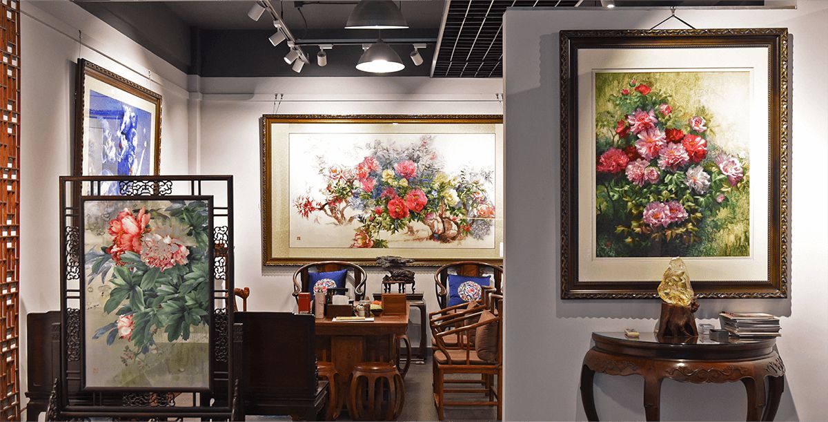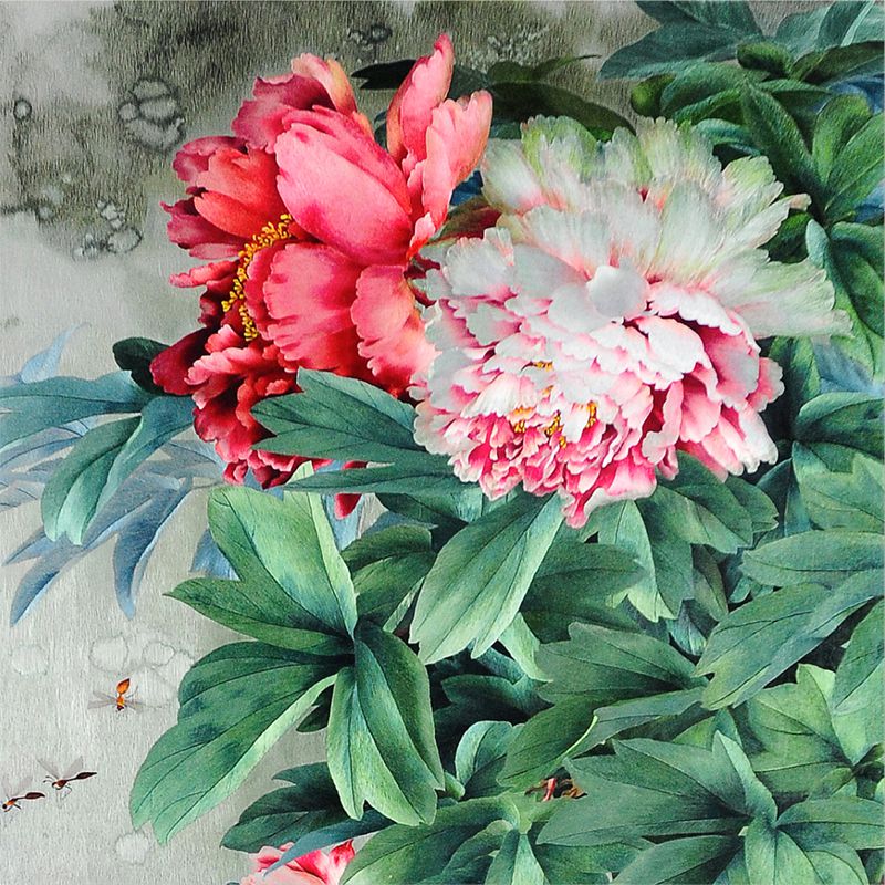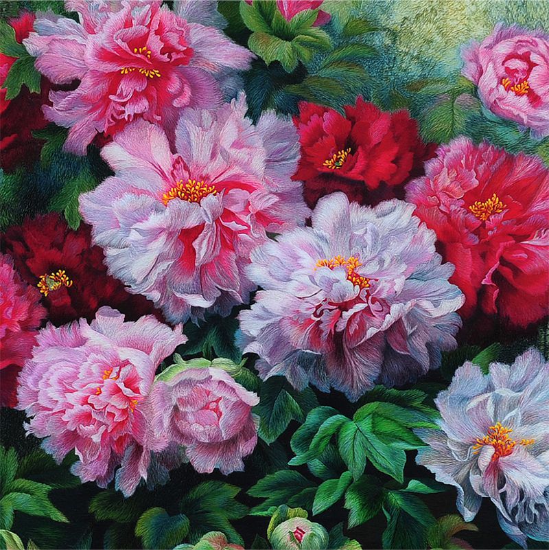 她绣制的牡丹色调温暖、色彩和谐,极具艺术美感,